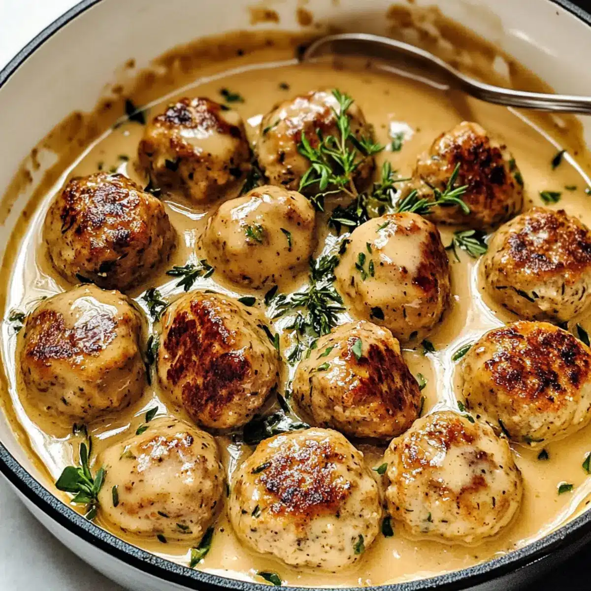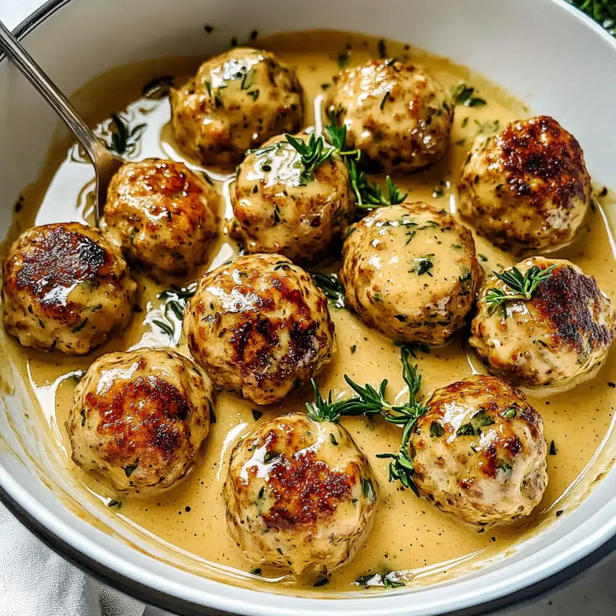 Putenfleischbällchen in cremiger Ahorn-Senf-Sauce