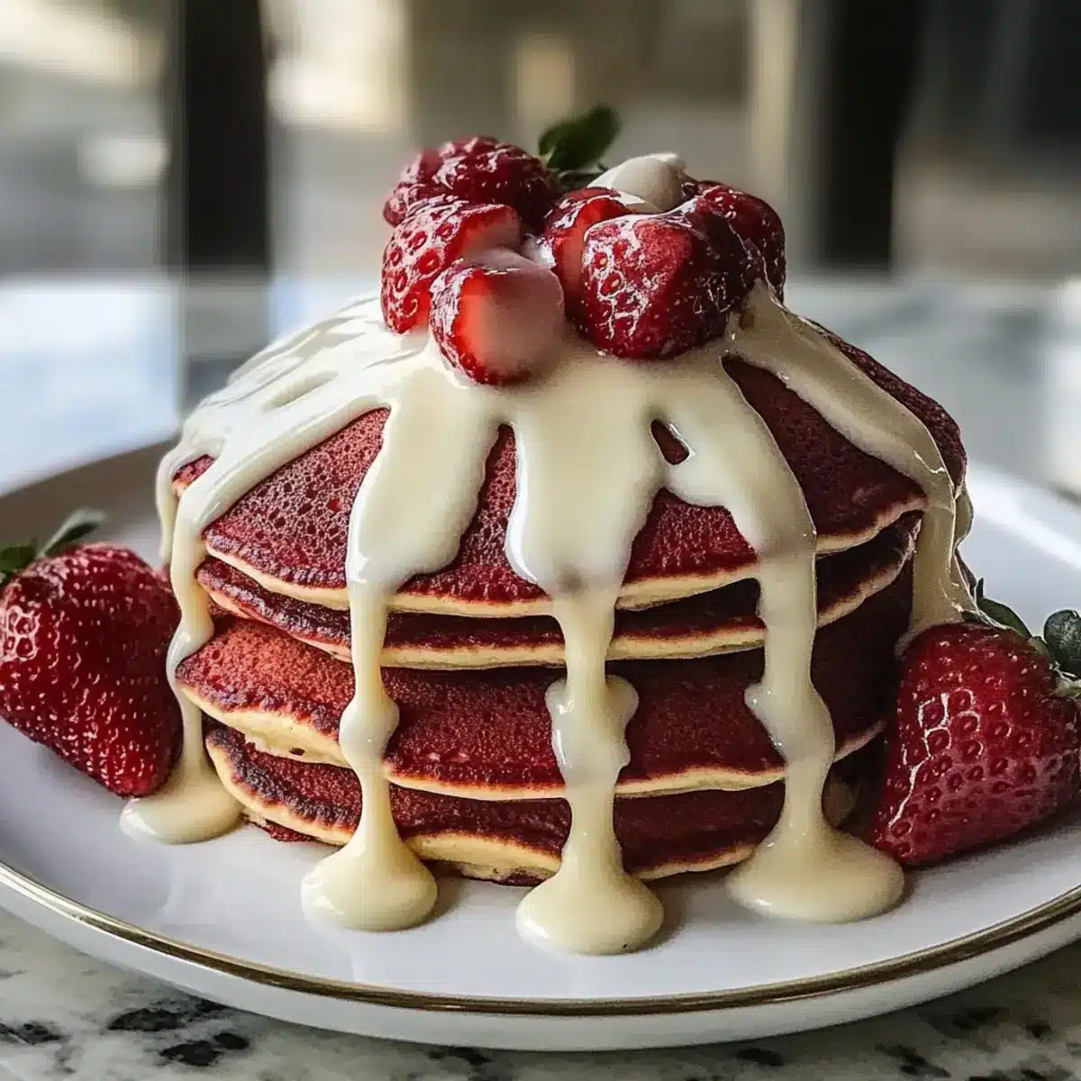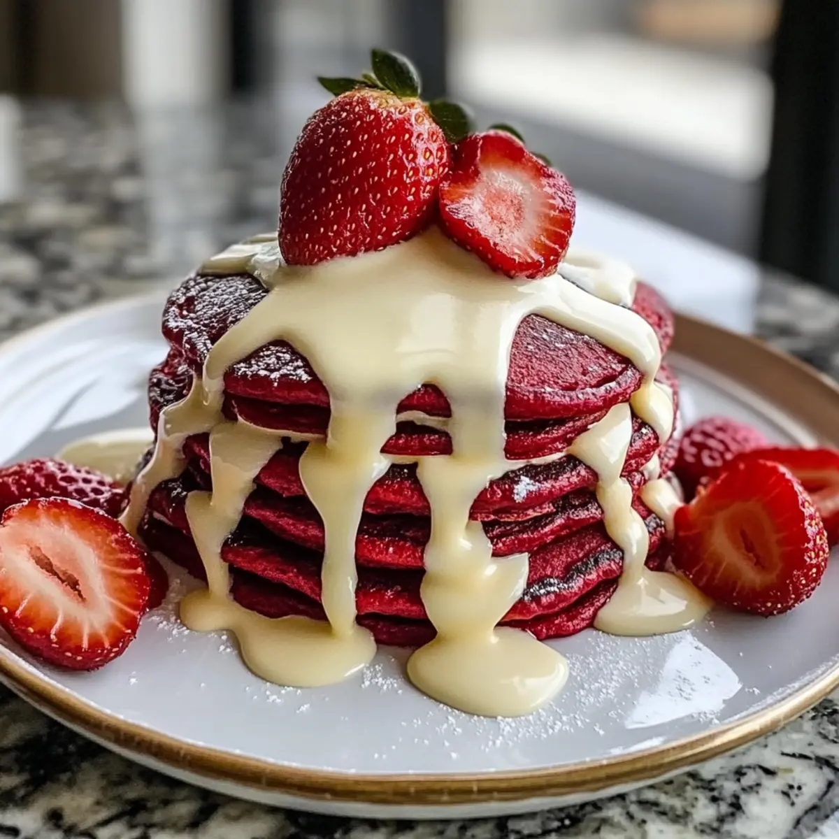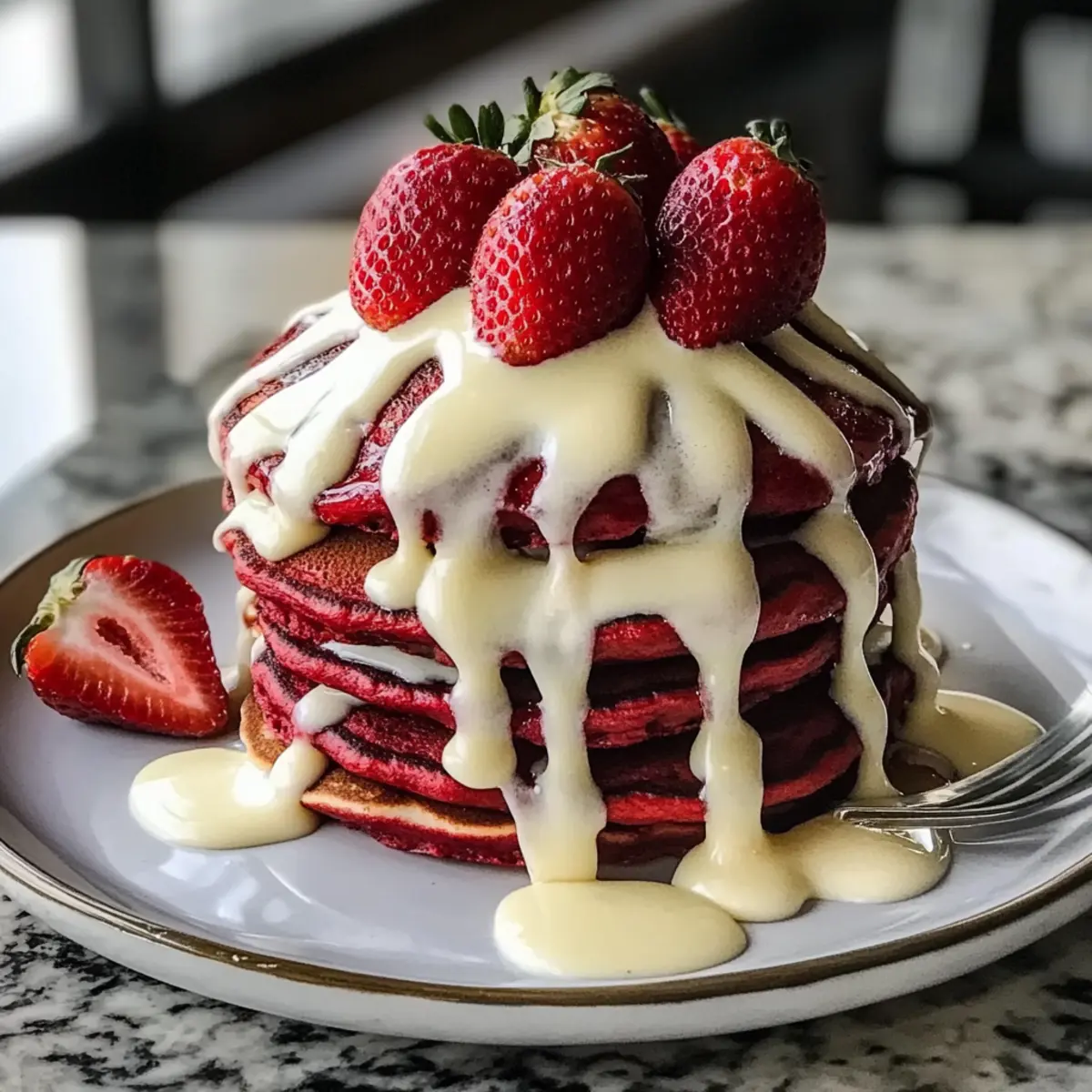 Kombiniere die lebhafte Süße der Rote Samt-Pfannkuchen mit köstlichen Beilagen für ein unvergessliches Frühstückserlebnis.