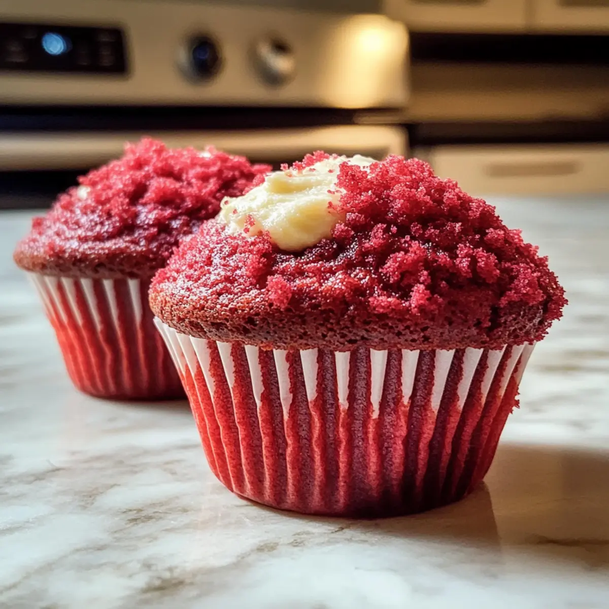 Für die Rote Samt Frischkäse Muffins empfehle ich, rote flüssige Lebensmittelfarbe zu verwenden, da sie eine gleichmäßige und lebendige Färbung gewährleistet. Alternativ kannst du Gel-Lebensmittelfarbe verwenden, die einen intensiveren Farbton liefert, ohne den Teig zu verdünnen. Achte darauf, die Farbe schrittweise hinzuzufügen, bis du den gewünschten Farbton erreicht hast.