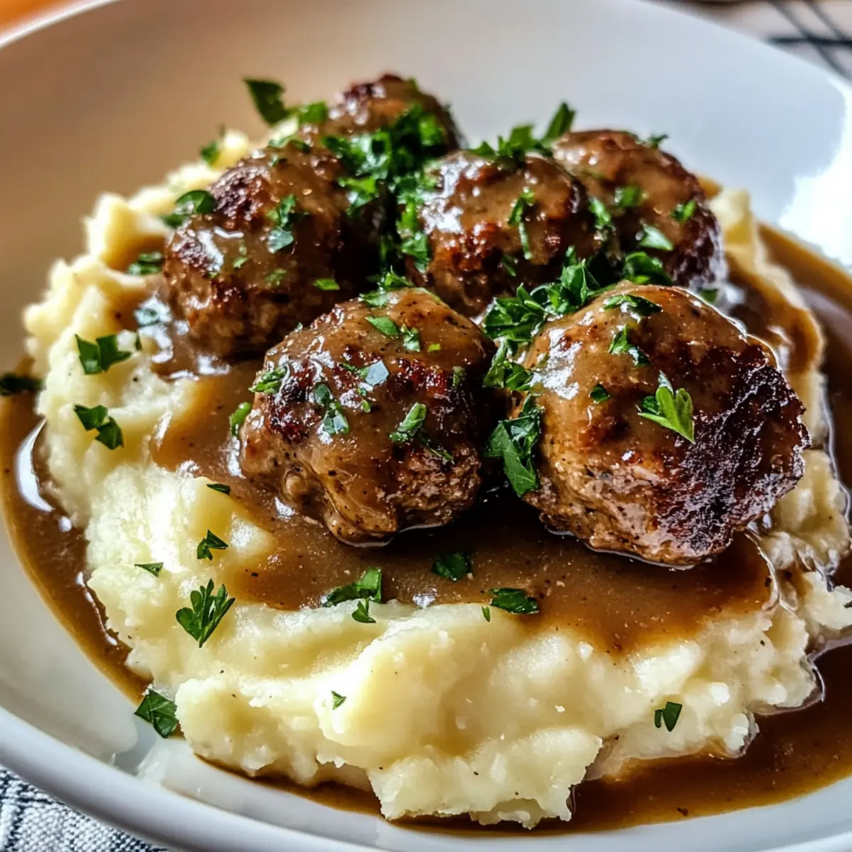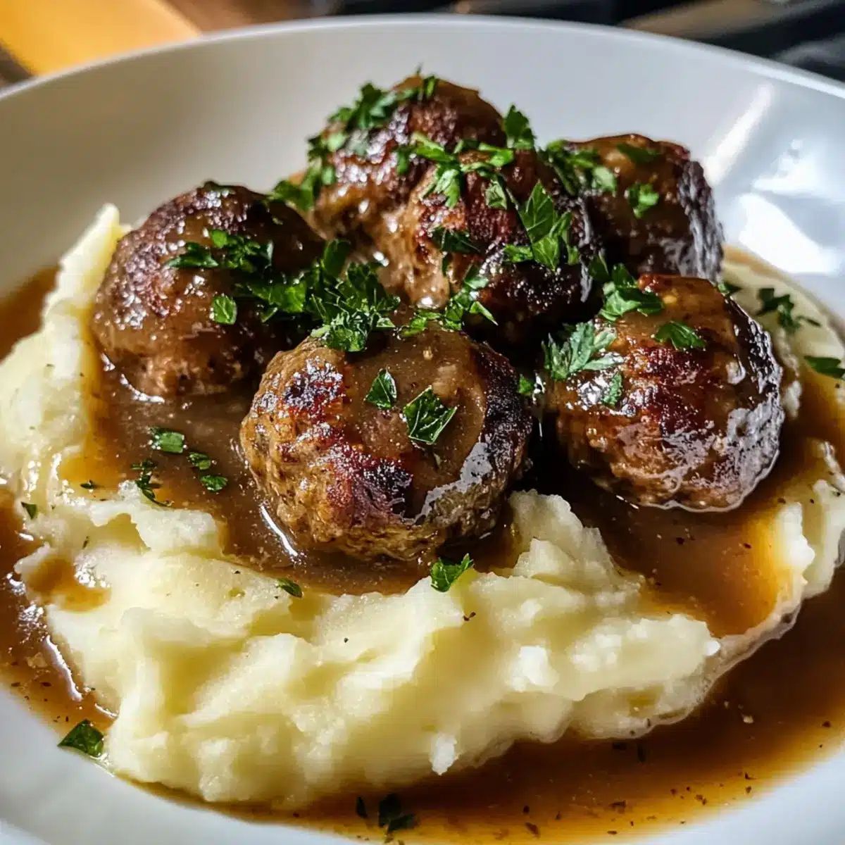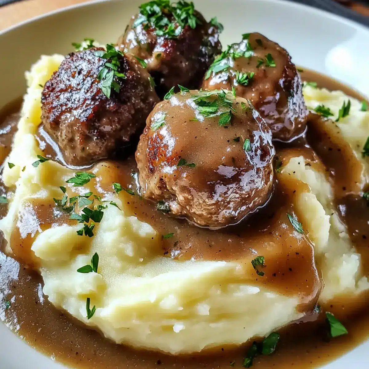 Salisbury-Steak-Fleischbällchen mit Knoblauch-Kräuter-Püree
