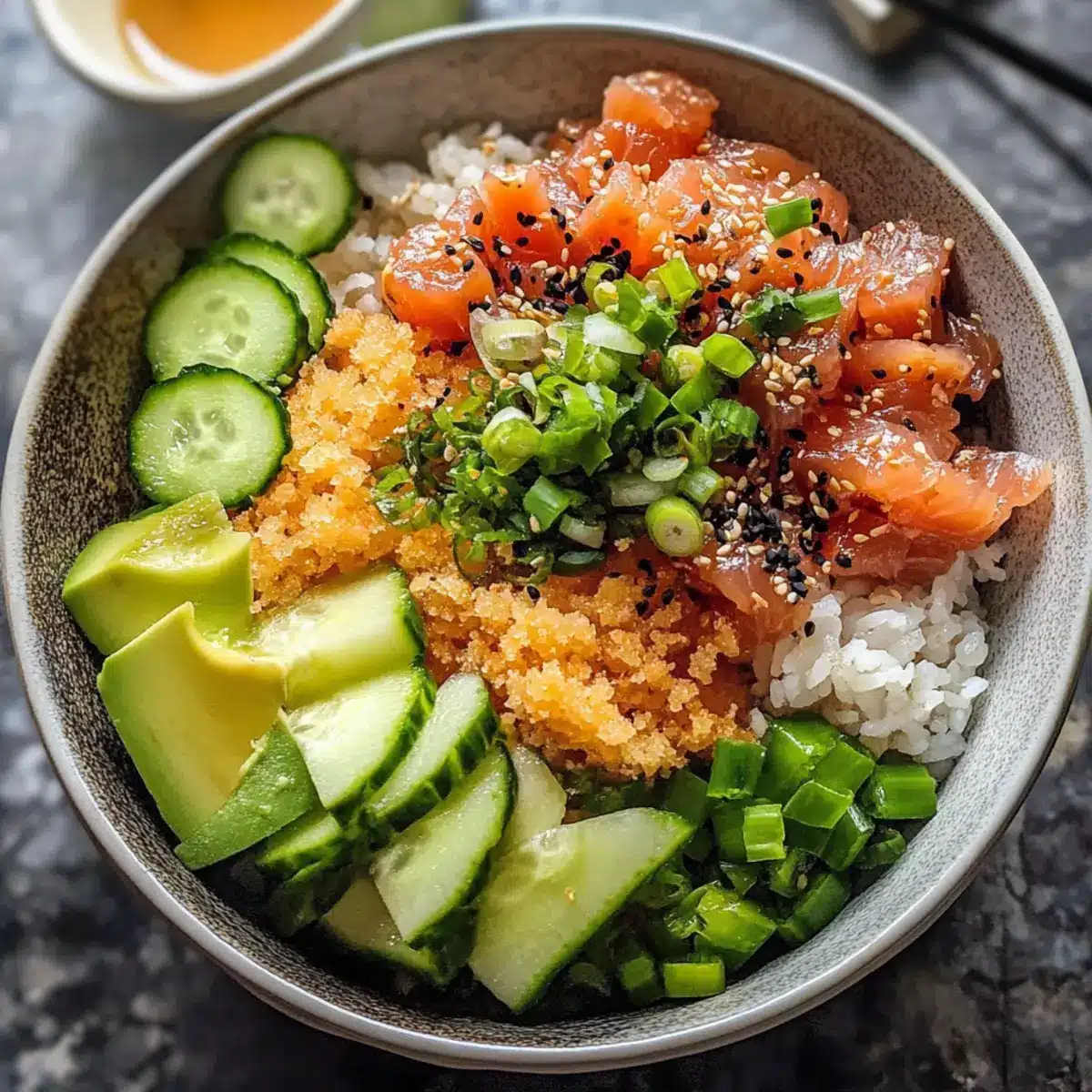 Scharfer Thunfisch Sushi-Bowl mit knusprigem Reis