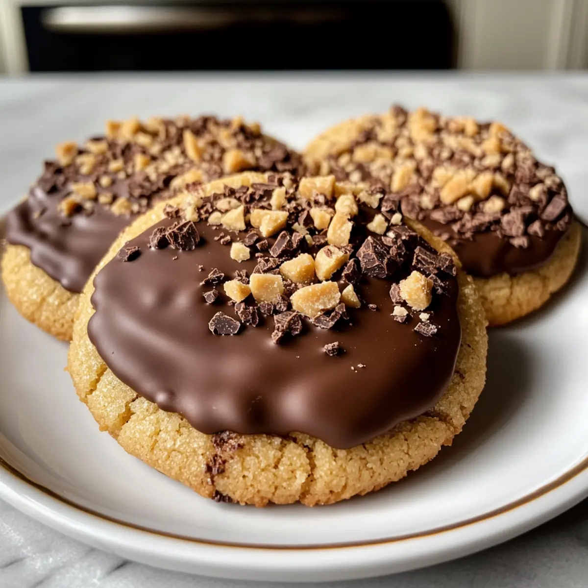 Schokoladen-überzogene Toffee-Kekse für Genießer