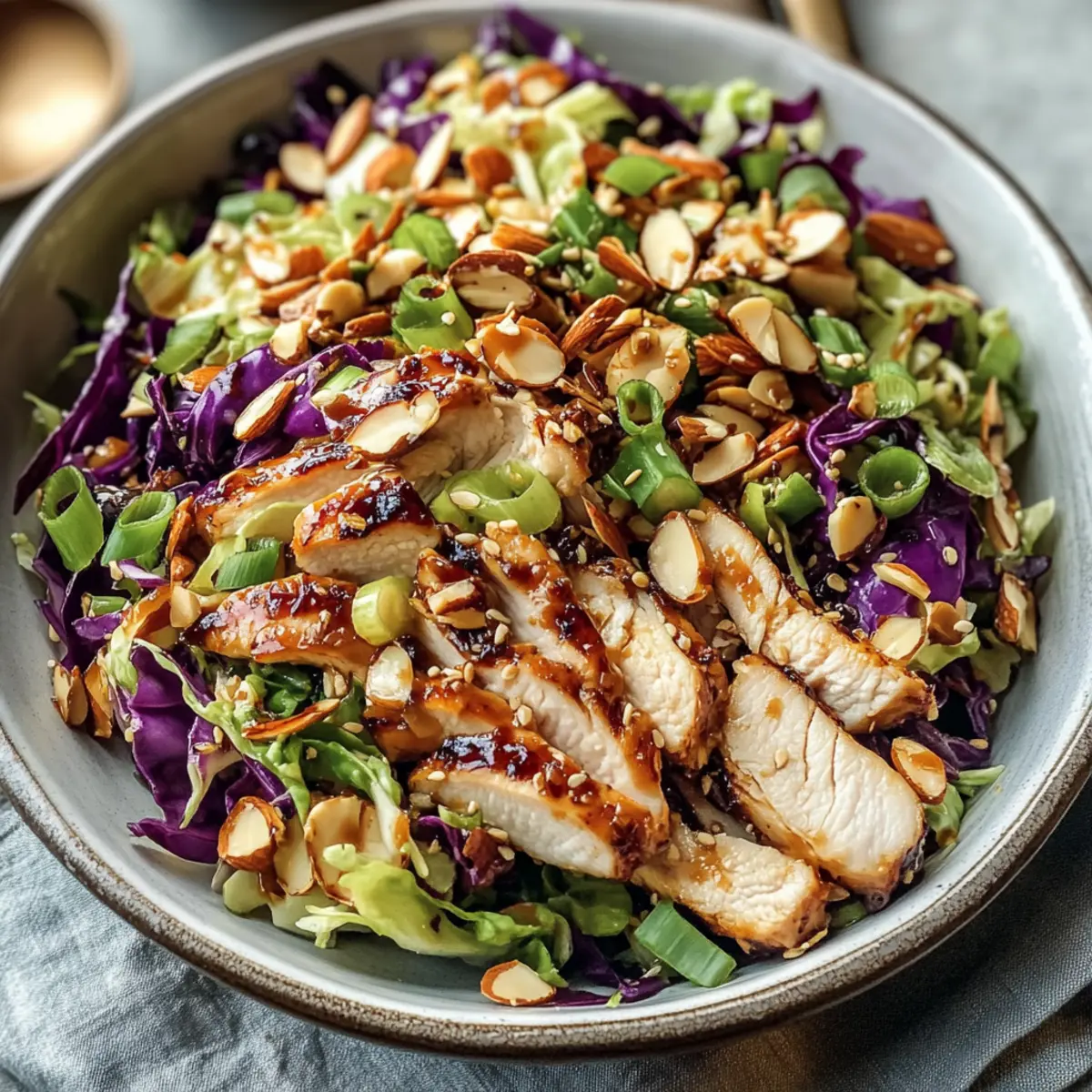 Hast du schon einmal in ein knuspriges, frisches Salatblatt gebissen und dabei sofort einen Hauch von Sommer gespürt? Mein Sesam-Hühnchen-Kohl-Crunch-Salat bringt genau dieses Gefühl direkt auf deinen Tisch! Diese gesunde und einfache Rezeptur vereint saftiges Hühnchen mit knackigem Kohl und knusprigen Mandeln in einer köstlichen, sättigenden Kombination. Die pikante Sesamdressing gibt dem Ganzen den letzten Schliff und verwandelt jede Mahlzeit in einen Genuss, der sowohl schnell zuzubereiten als auch perfekt für Meal Prep ist. Ob zum Mittagessen im Büro oder als leichtes Abendessen – du wirst dich in diese erfrischende Salatvariation verlieben! Bist du bereit, deinem Gaumen etwas Gutes zu tun und neue Geschmackserlebnisse zu entdecken?