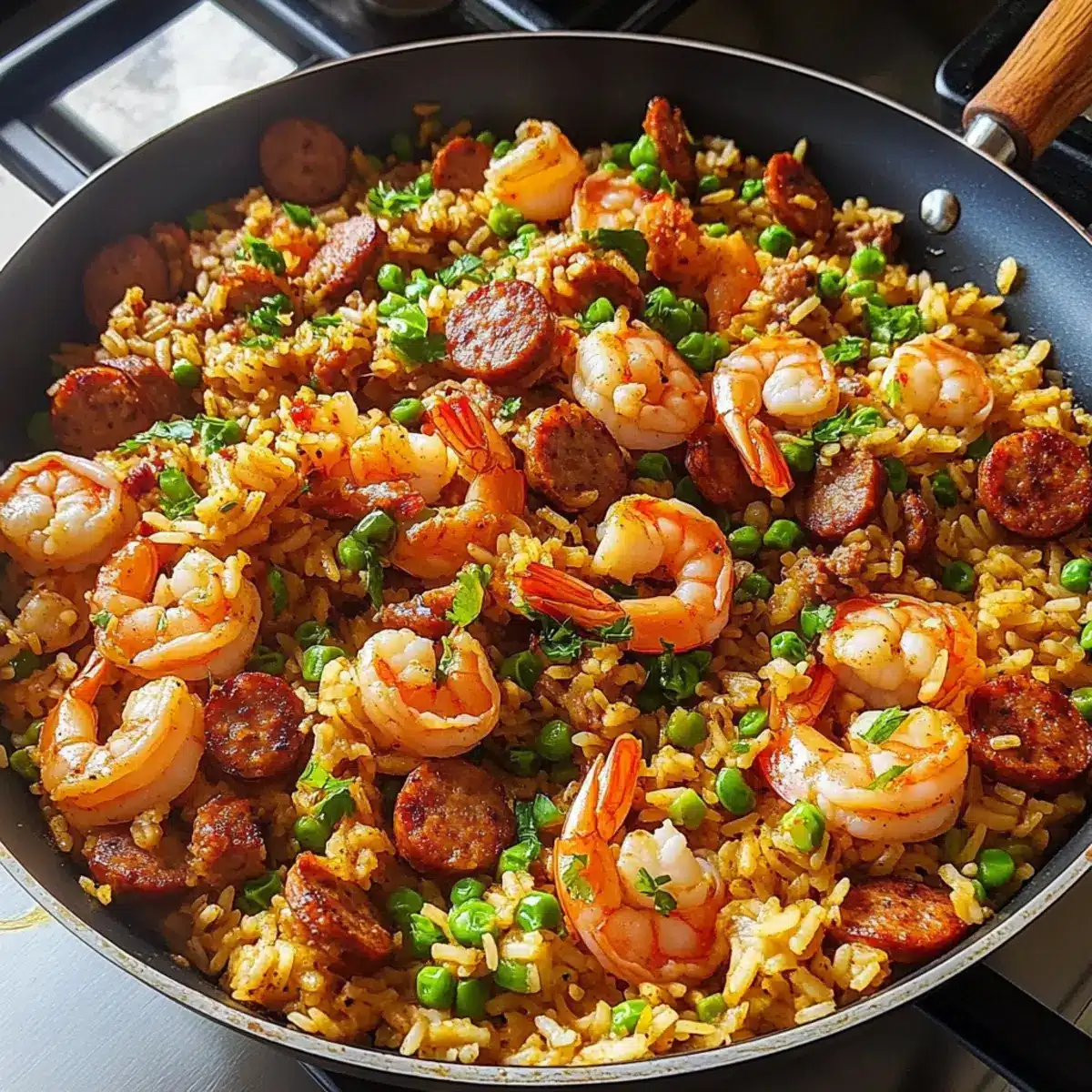Würzige Vielfalt: Die Kombination aus saftigen Garnelen und rauchiger Wurst bietet einen herzhaften Geschmack, der jeden begeistert.