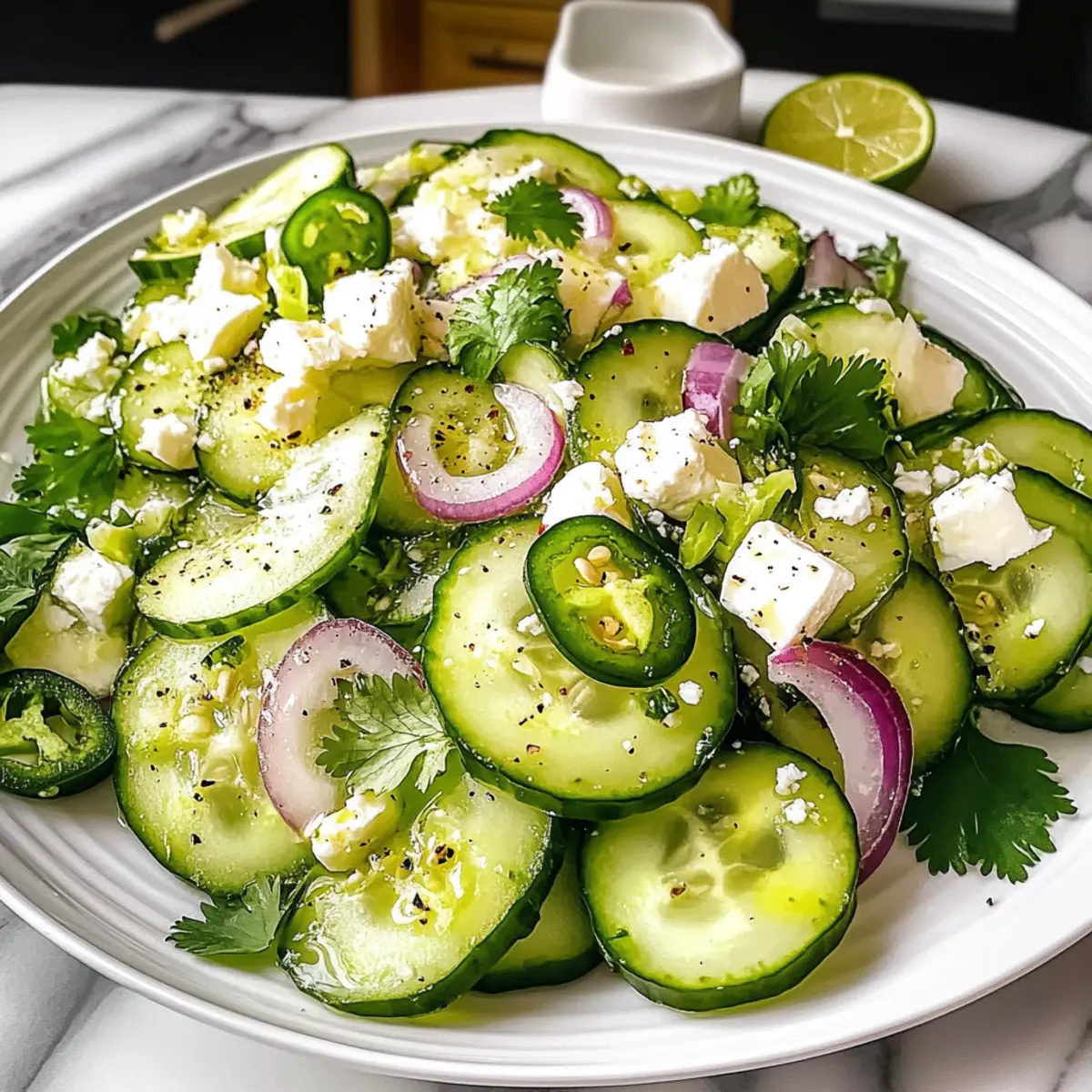 Frische und Leichtigkeit: Mit knackigen Gurken und spritziger Limette bringt dieser Gurkensalat eine erfrischende Note in jeden Bissen.