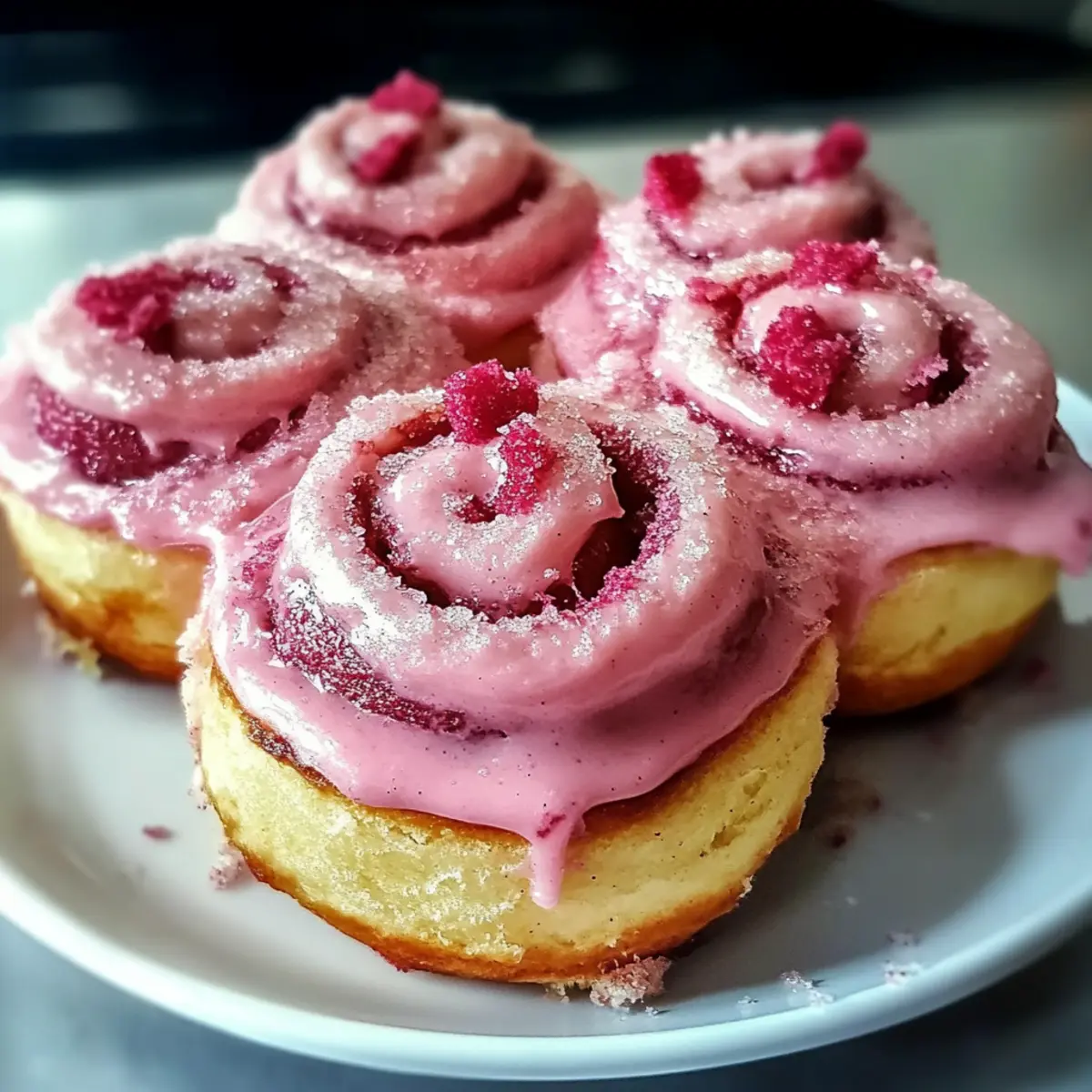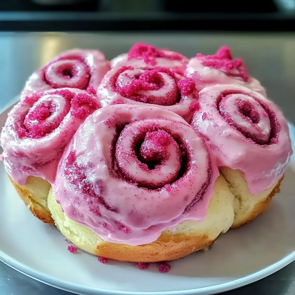 - Frosting – ein Frischkäse-Frosting wird empfohlen, das selbstgemacht oder gekauft werden kann; es rundet die Süßen pinken Samt-Zimtschnecken perfekt ab.