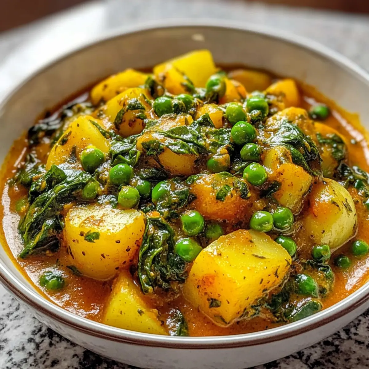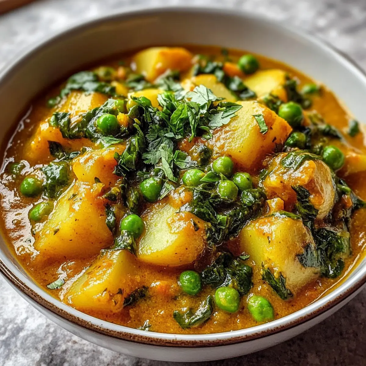 Zutatenwahl: Verwenden Sie frische, hochwertige Zutaten, um den Geschmack des veganen Kartoffelcurrys mit Spinat und Erbsen zu intensivieren.