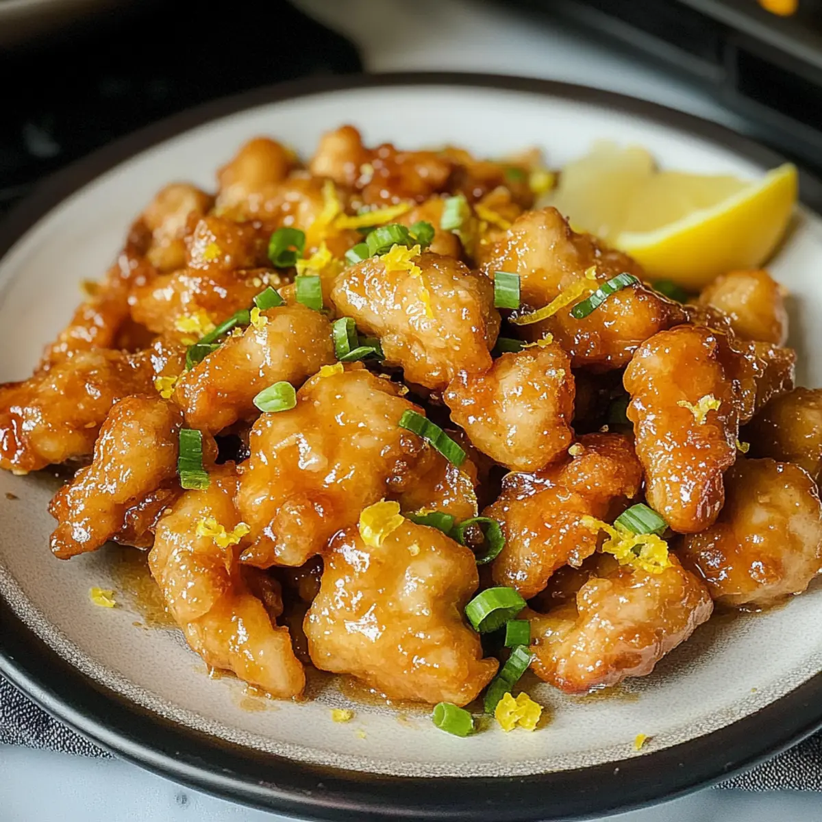 Wiedererwärmung: Um die Knusprigkeit wiederherzustellen, erhitzen Sie das Zitronenhühnchen bei 190 °C (375 °F) im Ofen für 8-10 Minuten.